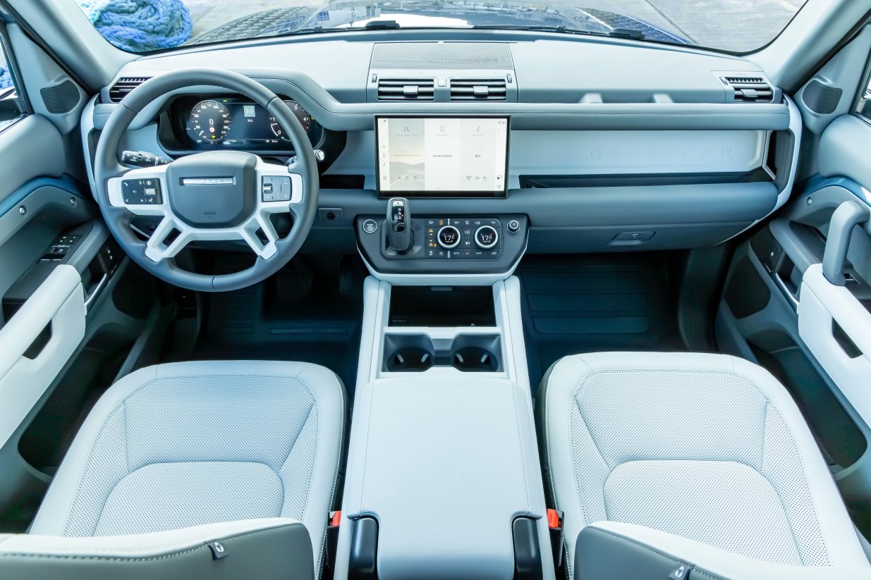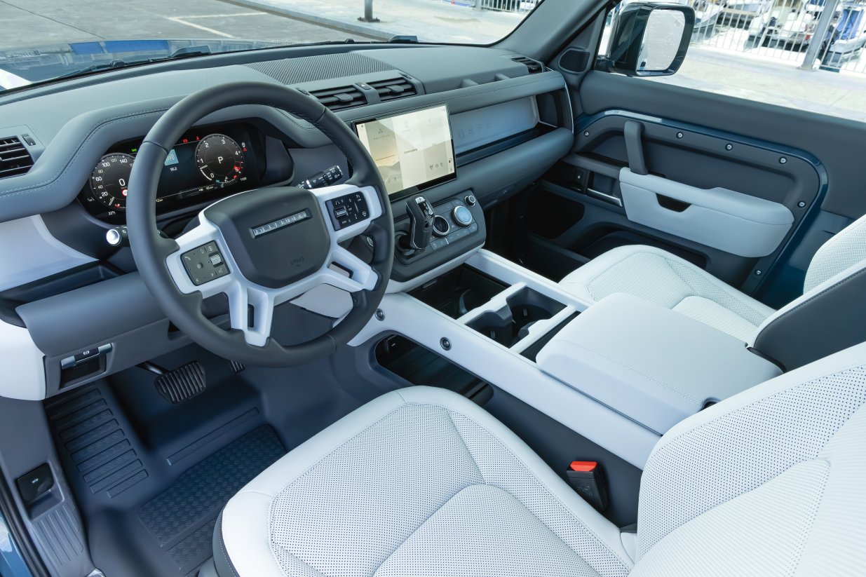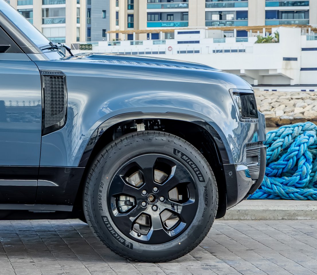 We are delighted to offer this 2025.5 Land Rover Defender presented in Tasman Blue with a Light Cloud/Lunar Resist seats with Light Cloud/Lunar interior Interior.This particular example has a huge specification including Air Suspension Pack, ClearSight Interior Rear View Mirror, 20 Style 6011 Gloss Black, Sliding panoramic roof, Privacy glass, Domestic plug socket, Front Fog Lights, Cold Climate Pack, Extended Black Exterior Pack, Light Cloud headlining, 12-way heated electric driver memory front seats with 2-way manual headrests, Body-coloured Spare Wheel Cover
