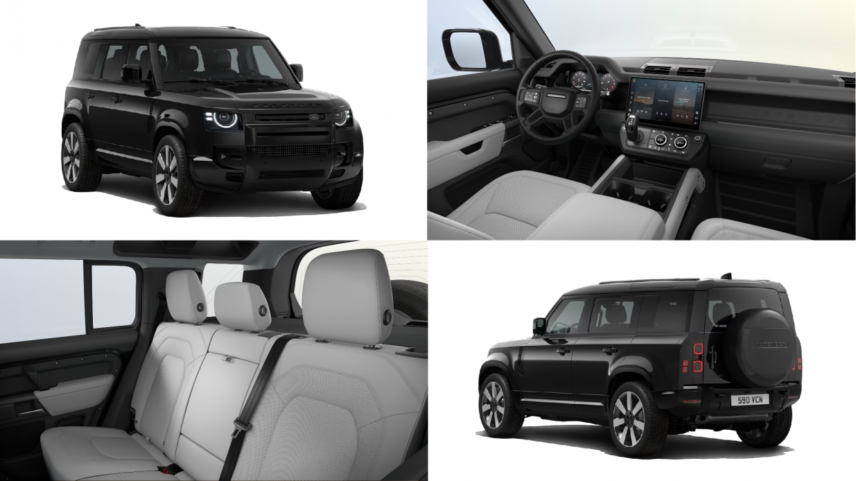 We are delighted to offer this 2026 Land Rover Defender presented in Santorini Black with a Light Cloud perforated Windsor leather seats with Light Cloud interior Interior.This particular example has a huge specification including Meridian Surround Sound System, 22 full size spare wheel, All-season tyres, Manual heated third row seats, Head-up Display, 22 Style 7030, Diamond Turned, Dark Grey wheels, Domestic plug socket, Cold Climate Pack, Advanced Off-Road Pack, Extended Black Exterior Pack, Body-Coloured Roof, Light Cloud headlining, Cross car beam in Dark Grey Powder Coat finish, 60:40 load through heated rear seats with manual slide and recline and centre armrest
